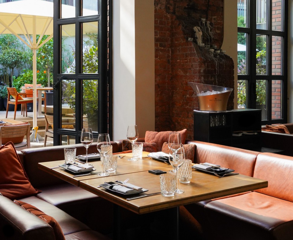 The outdoor patio is perfect for sunset dinners during the warmer months.