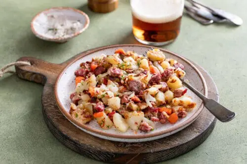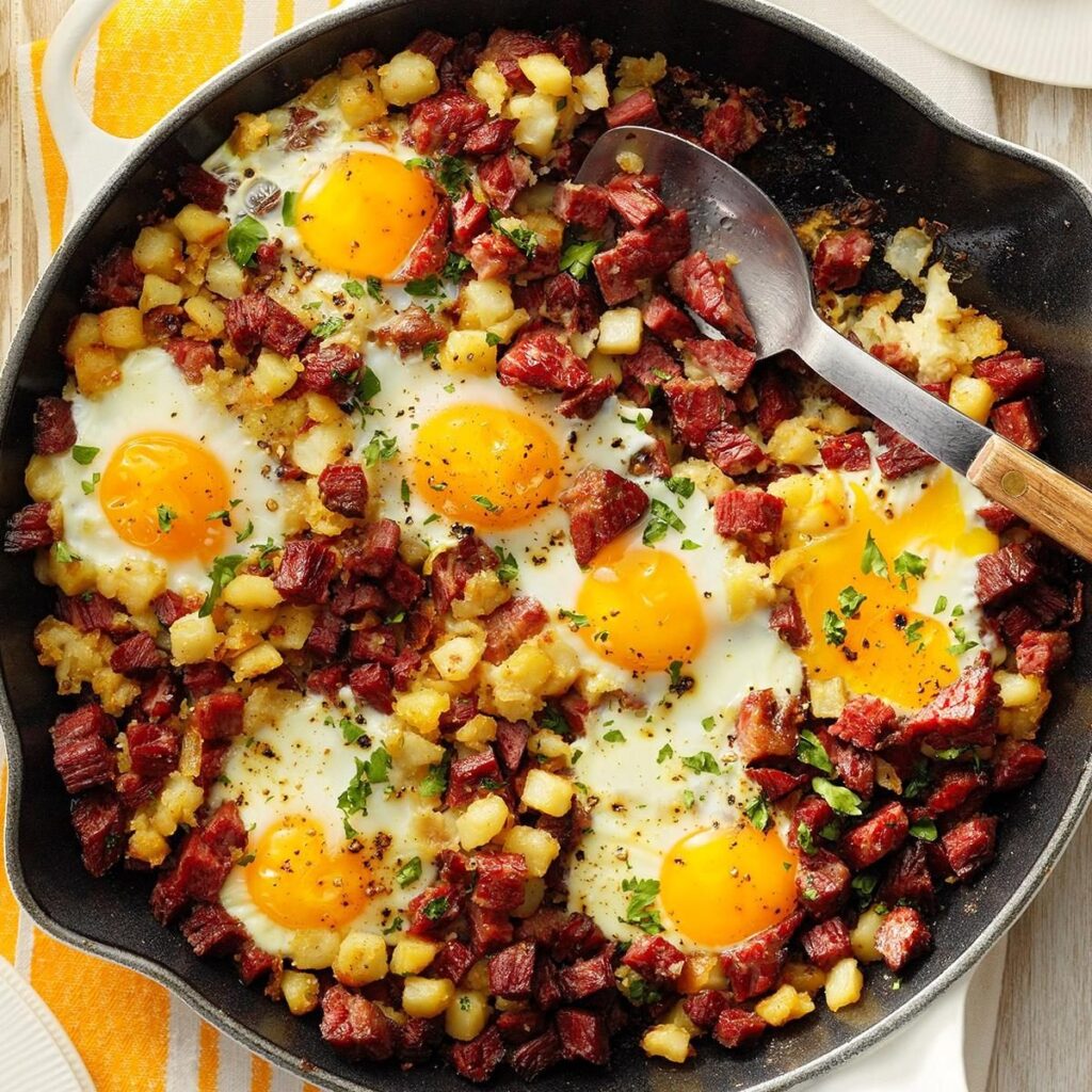 One of the most prevalent ways to utilize corned hamburger scraps, this dish combines chopped corned hamburger with diced potatoes, onions, and sometimes corned chili peppers. Broil everything in a skillet until brilliant brown and firm. Best with a fried egg to add to breakfast or brunch.