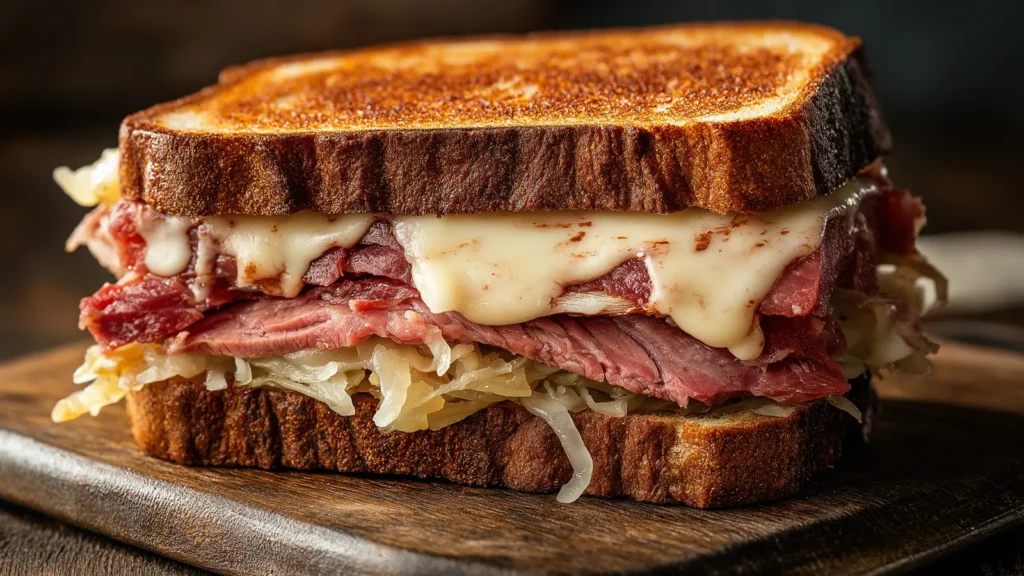 Layer lean cuts of corned hamburger on rye bread with mustard, Swiss cheese, and sauerkraut for a classic Reuben. Toast it in a skillet or panini press until warm and melty.