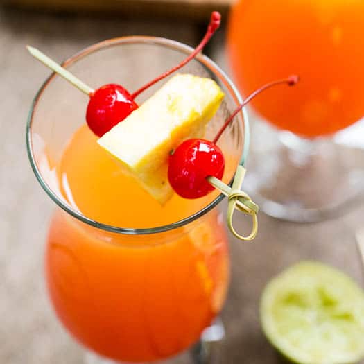 Serve in a broad challis with a cherry on top for a tropical bend.