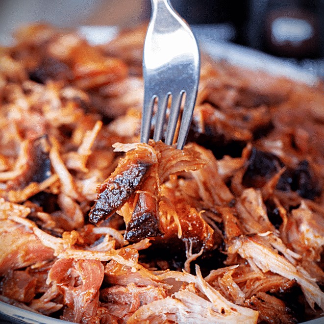Stand MixerMethodh:: Place warm ham in a stand mixer with the paddle attachment and blend on low until tattered.